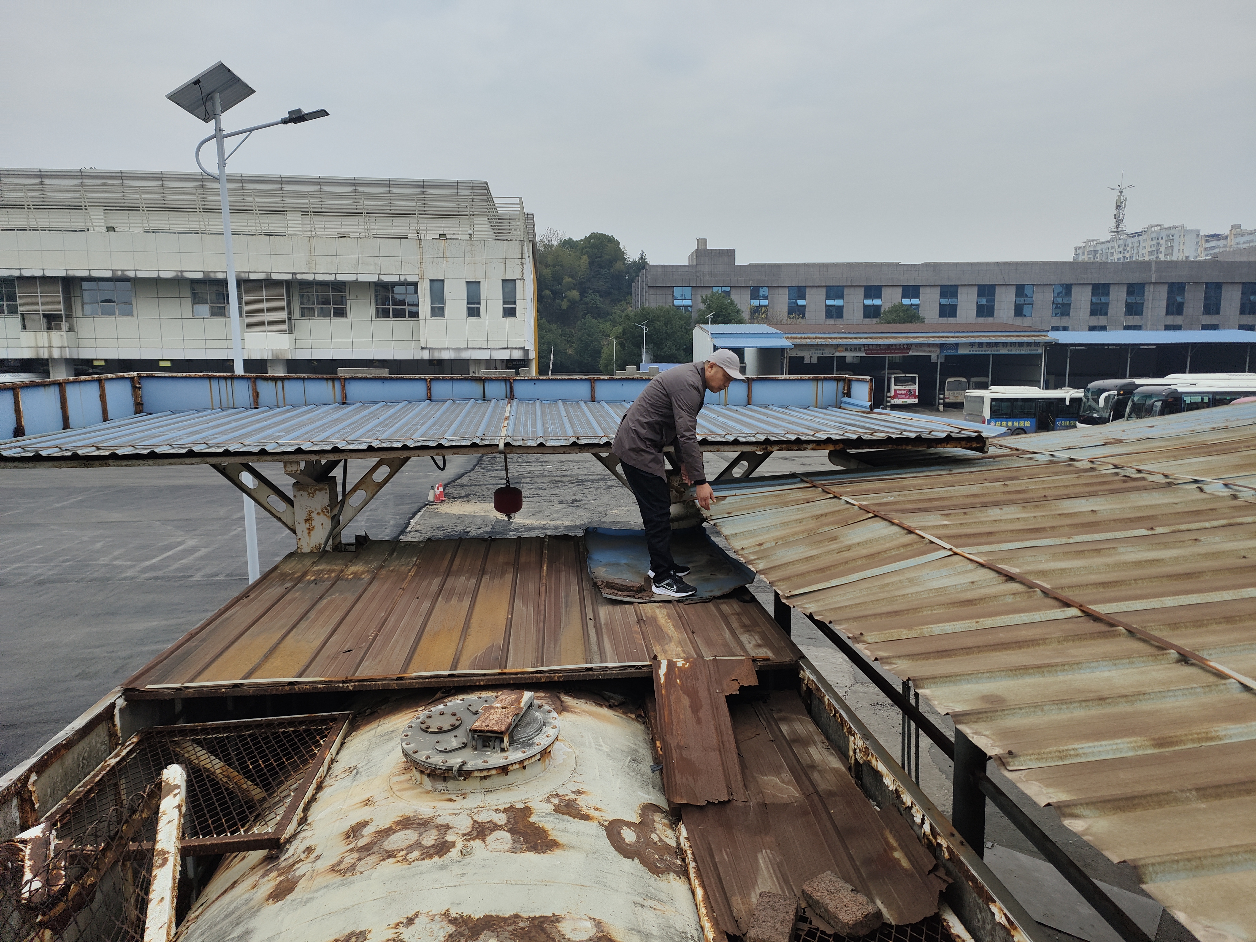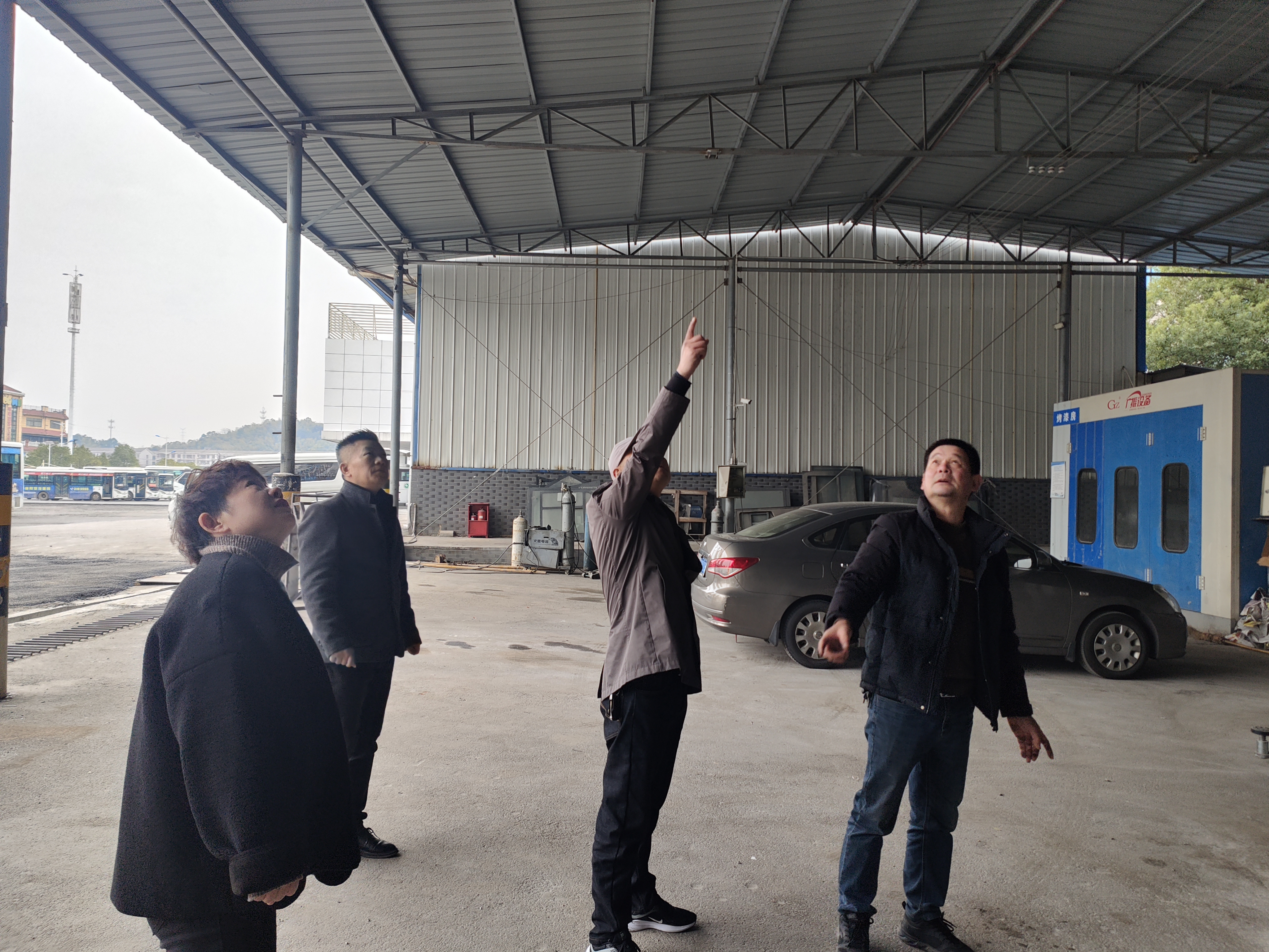 排查前,站場和修理廠已提前制定并完善了冰雪天氣應急預案,做到了責任到人、措施到位。排查過程中,檢查組細致檢查了站場辦公用房、充電樁頂棚、候車區(qū)域、修理廠廠房等建筑的屋頂承重結構等情況,及時清除了可能存在冰雪天積雪結冰隱患;在修理廠區(qū)域,廠長現(xiàn)場展示了已落實的冰雪天氣防護措施,其中包括專門設置的防護桿,用于對頂棚積雪進行加固和支撐,有效提升了屋面結構的安全性和穩(wěn)定性。檢查組對修理廠前期準備工作給予肯定,并要求繼續(xù)加強巡查頻次,一旦發(fā)現(xiàn)結構變形等情況,立即采取應急處置措施。